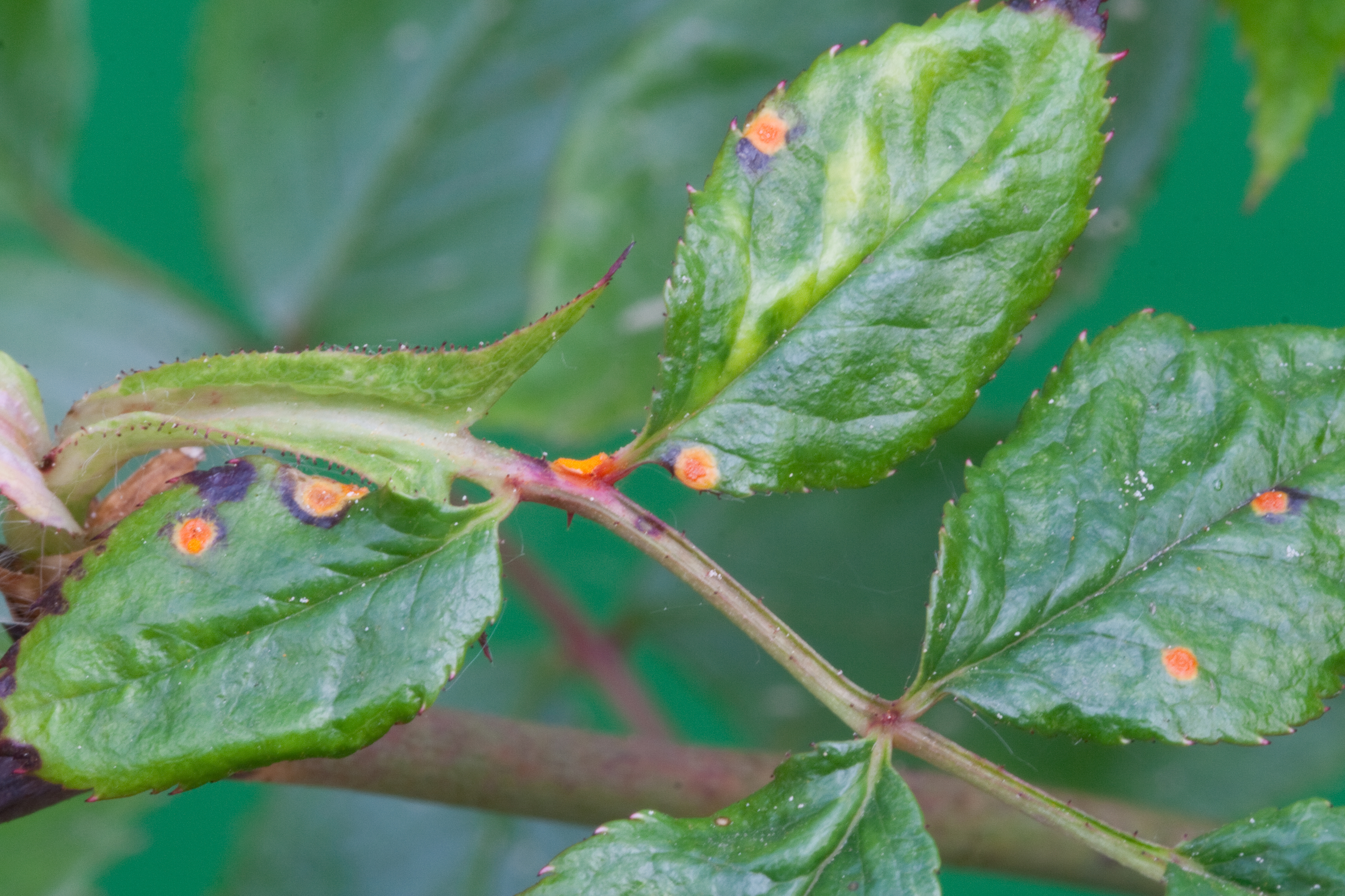 Хорошо развивается и распространяется во влажной среде. Дождливое лето и избыток азота может спровоцировать ее появление. Вызывают болезнь грибы рода Phragmidium disciflorum.