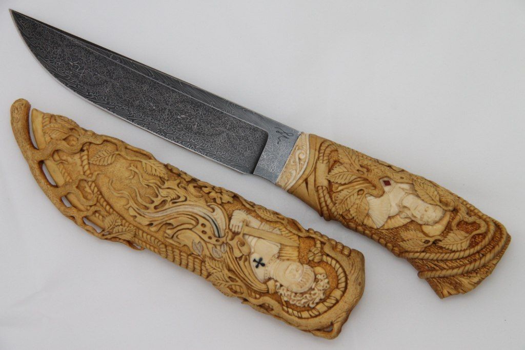 Нож Беркут, резная подставка из рога лося Длина клинка: 15.5см