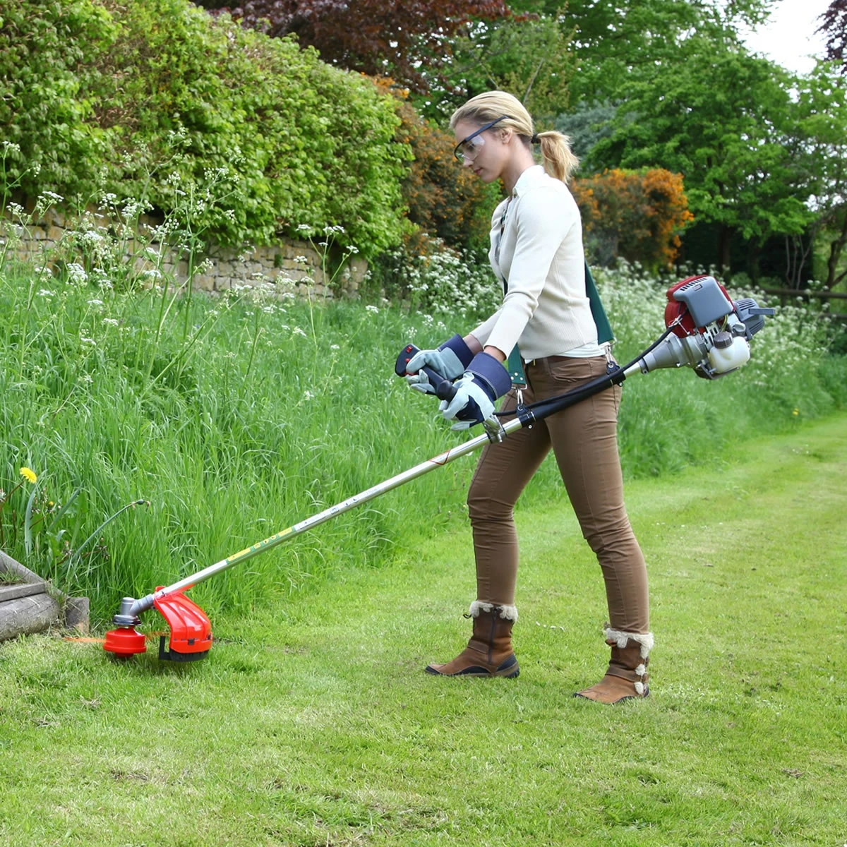 - При их использовании можно скашивать траву сразу на широкую полосу (35-40 см).