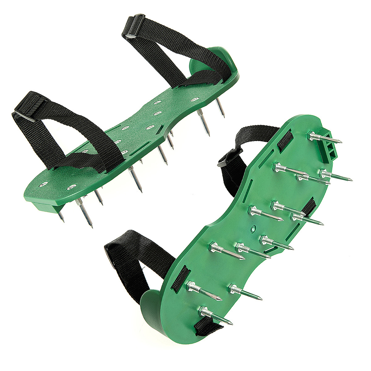 Для участка площадью до 6 соток идеальным вариантом будут сандалии для аэрации газона. Устройство достаточно простое: пластиковая подошва крепится на любую обувь с помощью двух ремешков, к подошве привинчено 12-14 шипов длиной 4-5 см. Зафиксировали сандалии на ногах и ходите по газону, остаётся привыкнуть только к тому, что ногу от земли желательно поднимать вертикально вверх.