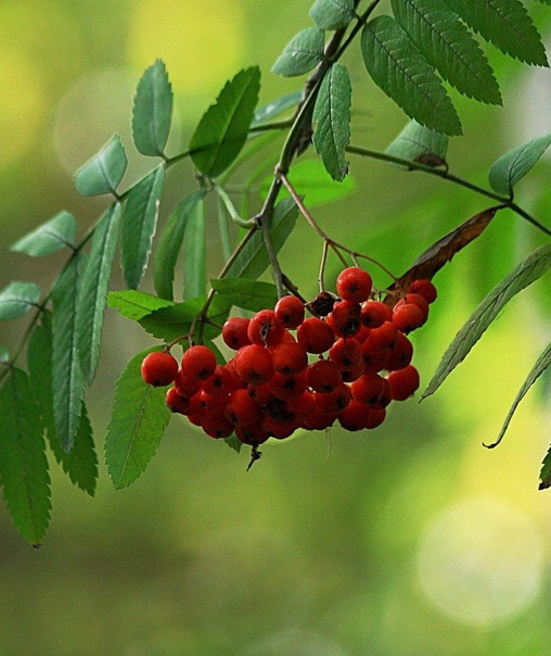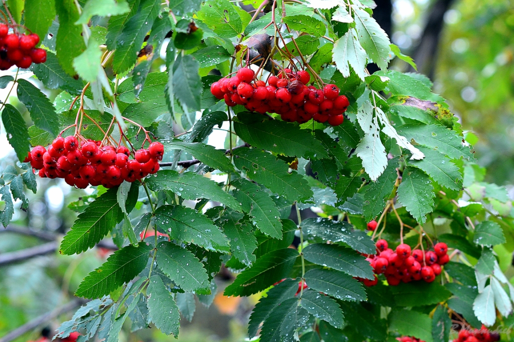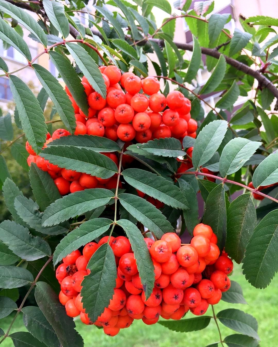 Рябина дает маленькие ягоды алого цвета на кроне дерева. Ягоды начинают всходить ближе к концу лета, и их можно собирать в период с августа по начало сентября.