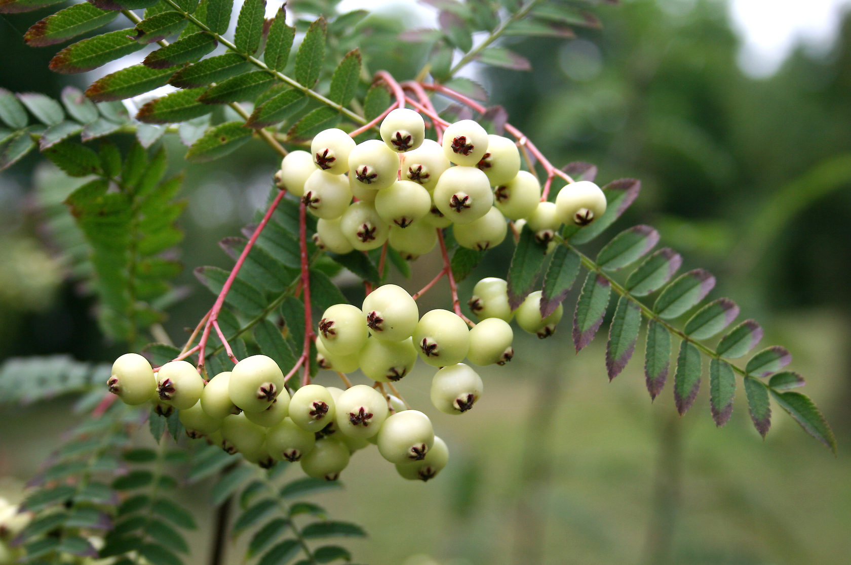 Листья, похожие на папоротник, состоят из множества маленьких листочков, которые сначала становятся красными, а затем пурпурными, а затем опадают, оставляя красные ягоды устойчивыми. Птицы хотели бы их немедленно, но они бледнеют, как раз перед тем, как их заметят, от розово-красного до розового и, наконец, до белого, переходящего в розовый цвет, который сохраняется до зимы.В этот момент птицы, наконец, схватывают свои уловки и ловят их.