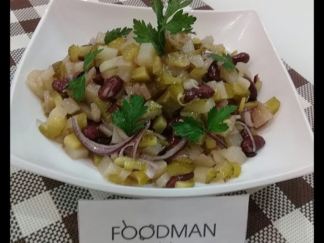 Как сделать салат из фасоли и огурцов? Очень быстро и просто.
