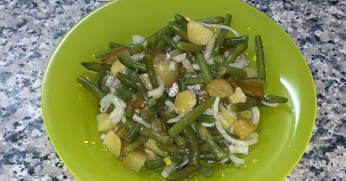Рецепт салата из картофеля и зеленой фасоли с заправкой из огурцов