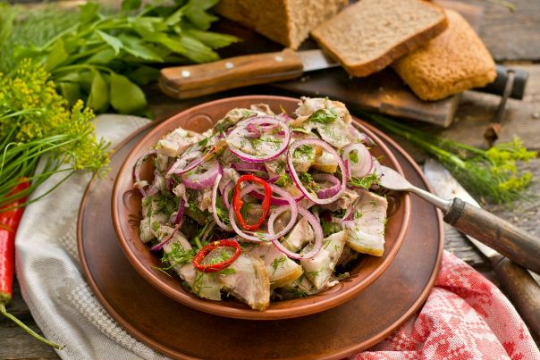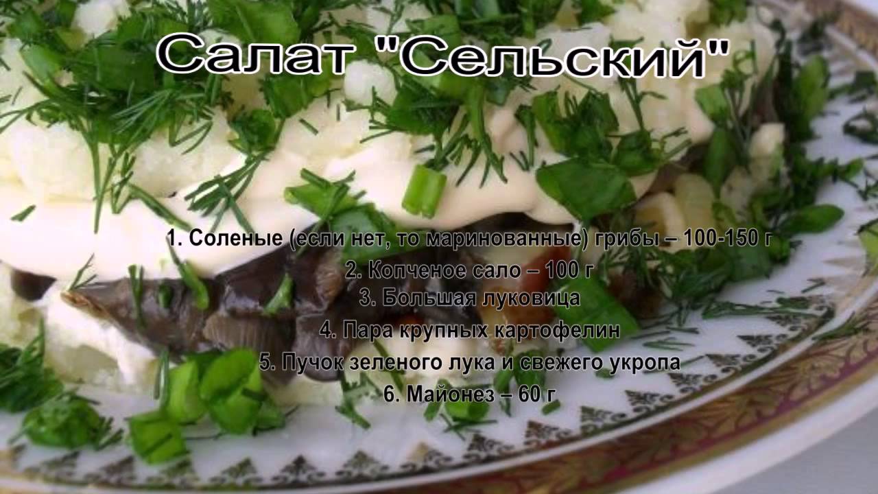САЛАТ «СЕЛЬСКИЙ» С СОЛЕНЫМИ ГРИБАМИ