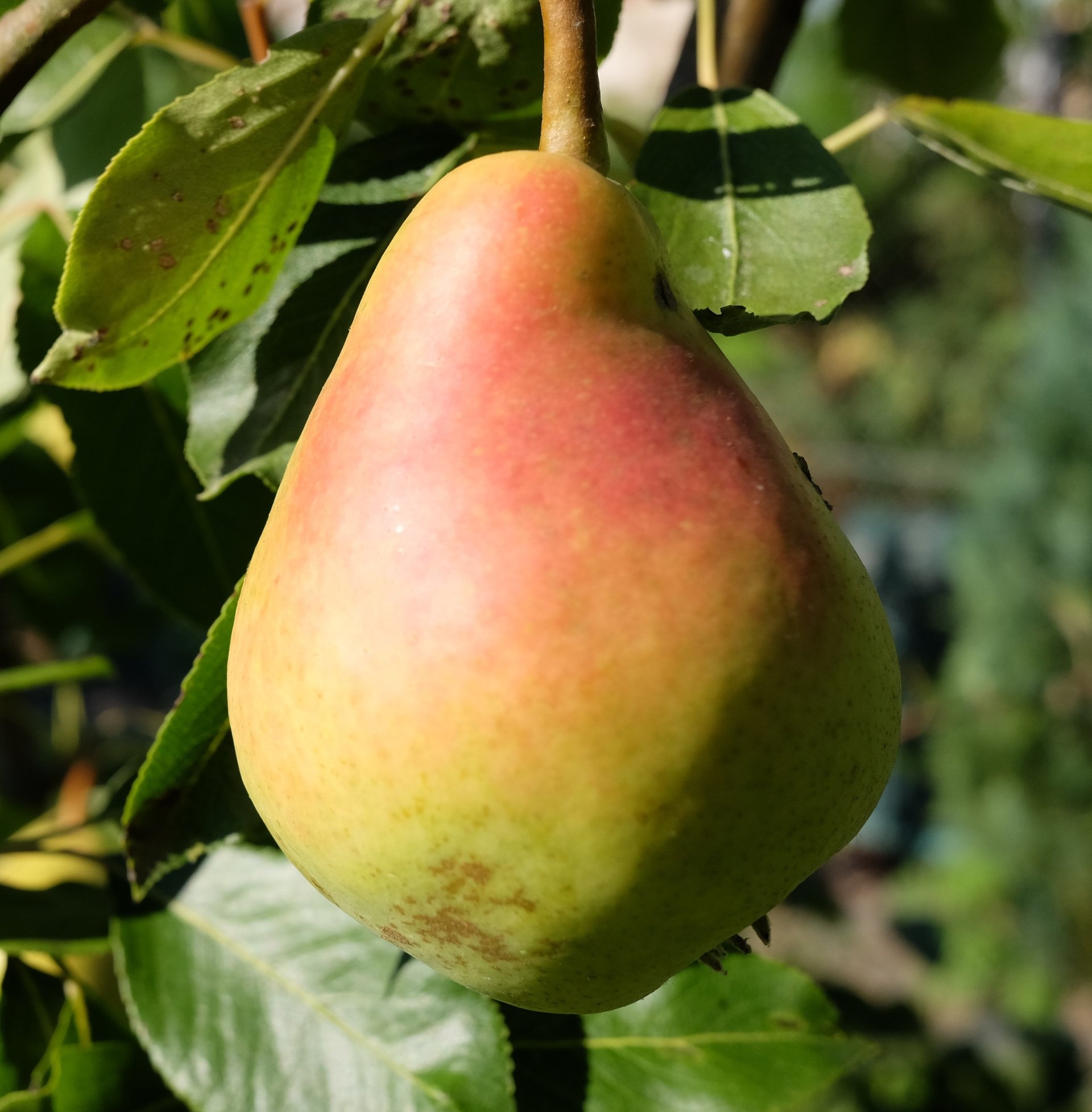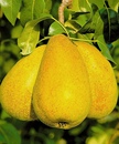 В середине августа на низкорослом (до 3 м) грушевом дереве созревают большие и вкусные жёлтые фрукты каплевидной формы.