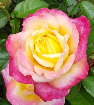Цвет этой розы зависит от погоды. Она может иметь розовый цвет вина, шампанского или персика. Аромат напоминает фруктовый запах с малиною.