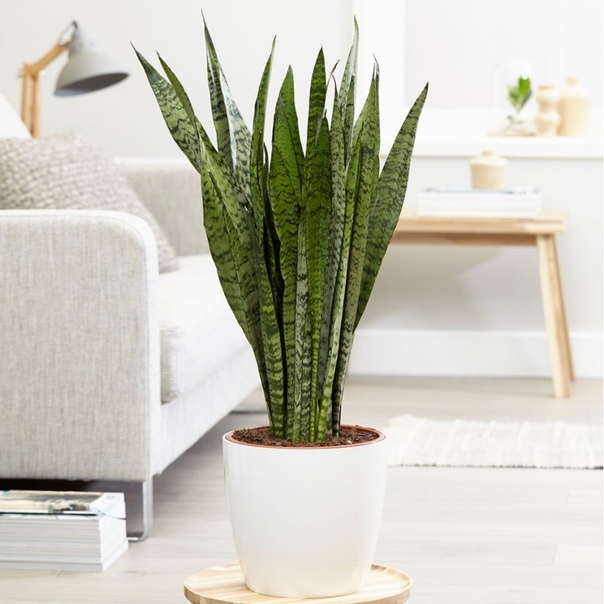 Змеиное растение (также известное как сансевиерия) — еще одно из самых простых в уходе комнатных растений, что делает его идеальным вариантом, не требующим особого ухода, для людей с плотным графиком.