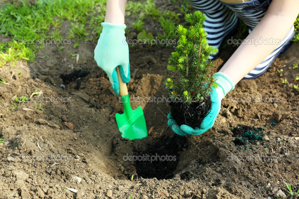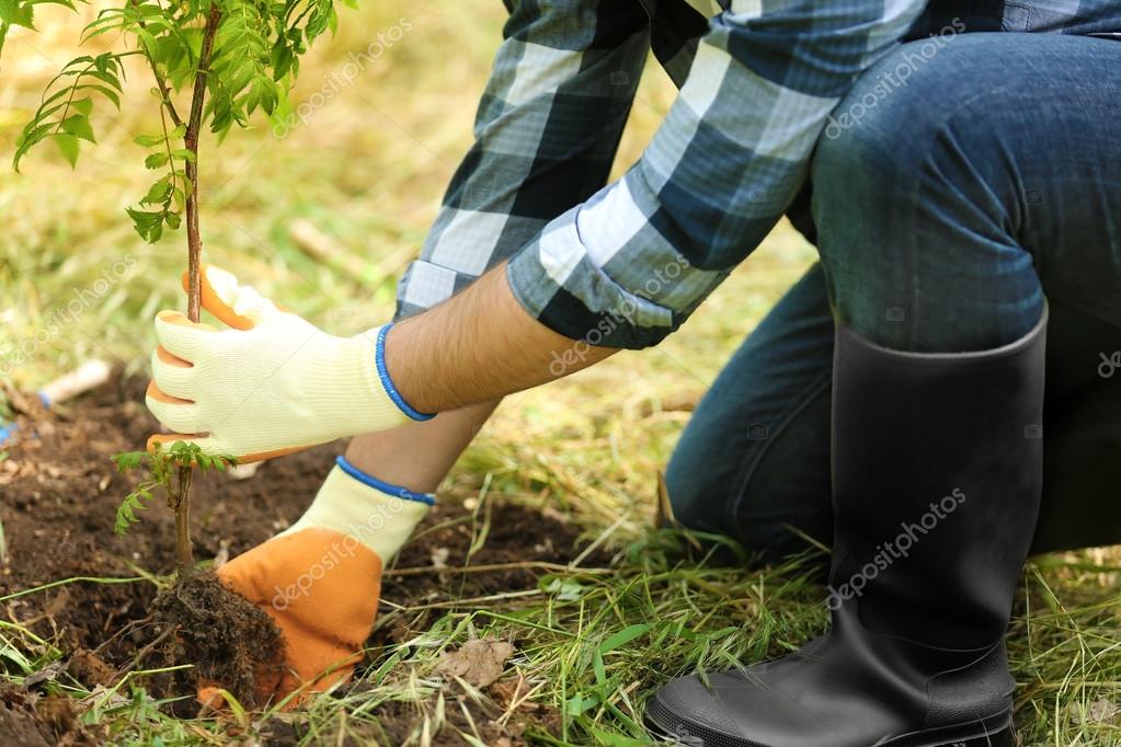 Одним из значений этого многозначного глагола является интересующее нас «производить посадку растений»: