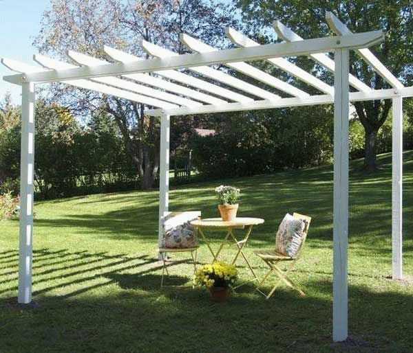 В свою очередь, с его помощью можно укрыть террасу на даче, устроить летнюю столовую, сделать место для детских игр и «карман» для автомобиля, куда не придется идти через весь участок. Конечно, есть вариант приобрести конструктор от производителя, но куда приятнее сделать навес на даче своими руками.