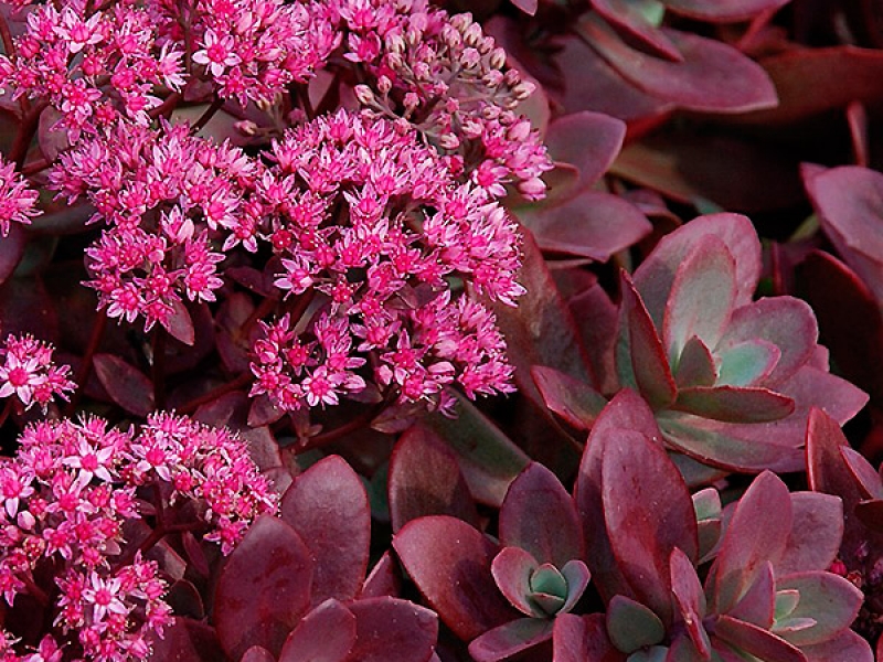 Этот очиток разноцветный с уникальными мясистыми листьями, которые в начале жизни серо-голубые, а со временем становятся пурпурно-красными. Поскольку новые листья появляются в течение всего вегетационного периода, этот очиток месяцами представляет собой радугу приглушенных оттенков.