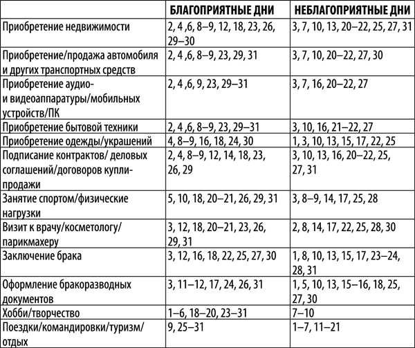 ♀ Пятница. В этот день недели миром управляет Венера. Энергетика пятницы — чувственная, гармоничная, созерцательно-пассивная. День легкий — самый лучший день для свиданий, развлечений, отдыха и получения удовольствий. Посещайте все, что связано с искусством — музеи, выставки, музыкальные мероприятия. Наслаждайтесь красотой. Оказывайте знаки внимания человеку, который нравится. Завязывайте партнерские отношения. Будьте щедрыми. Организовывайте домашние вечеринки. Посетите косметолога, парикмахера. Вредно уединяться, грустить и заниматься самоанализом. В пятницу не надо заниматься делами вторника, среды и четверга.