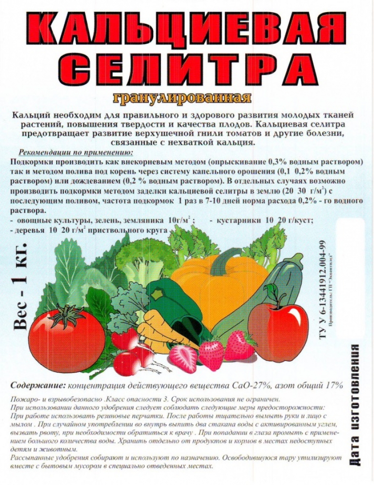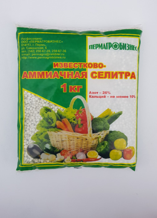 Самой популярной разновидностью аммиачной селитры является известково-аммиачная селитра, которая содержит 26-28% азота и не менее 10% кальция (до 20%).
