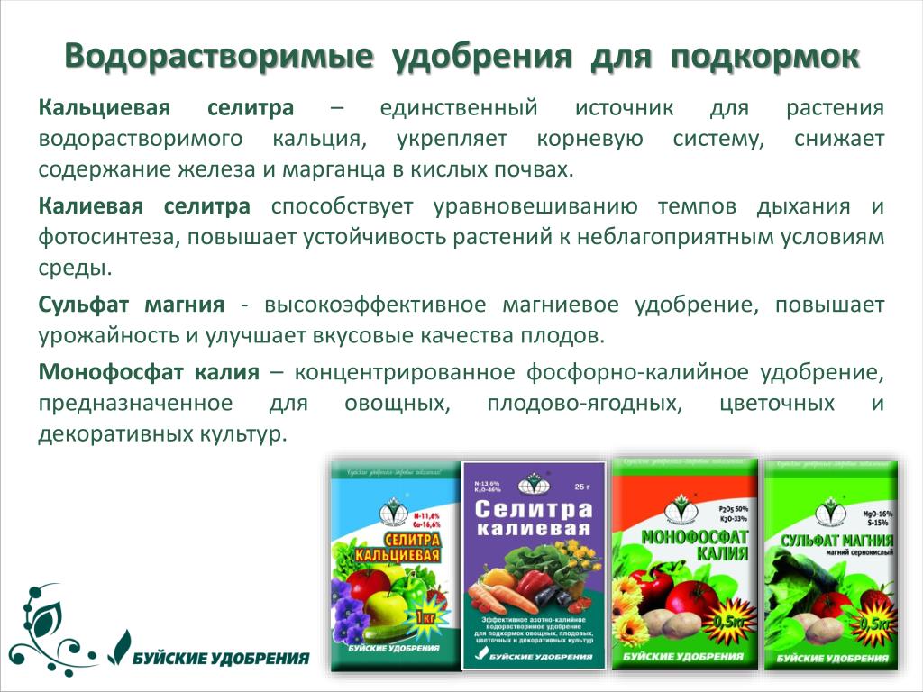 Также в продаже можно найти аммиачную селитру с микроэлементами (опять-таки с магнием, бором, медью, железом, марганцем и цинком).