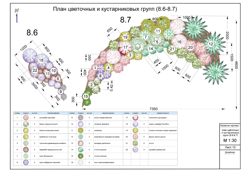 Посадочный чертеж цветника — дендроплан в миниатюре