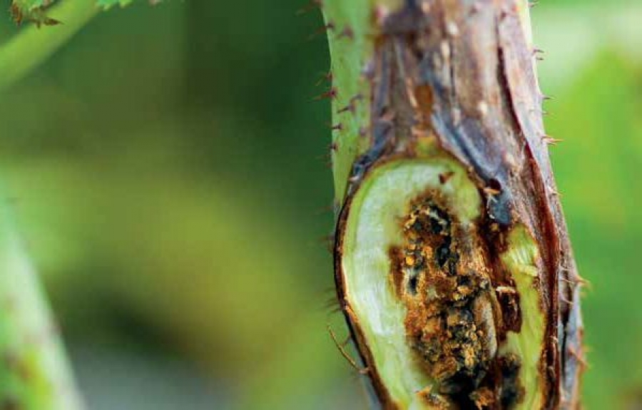 Такое совместное (комплексное) повреждение насекомым и грибной инфекцией приводит к ломкости больных стеблей при укладке их на зиму, их вымерзанию или усыханию весной и летом 2 года вегетации.