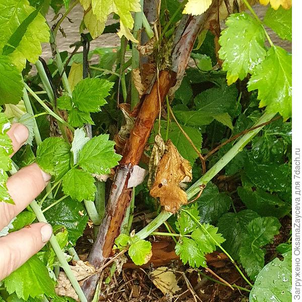 Такое совместное (комплексное) повреждение насекомым и грибной инфекцией приводит к ломкости больных стеблей при укладке их на зиму, их вымерзанию или усыханию весной и летом 2 года вегетации.