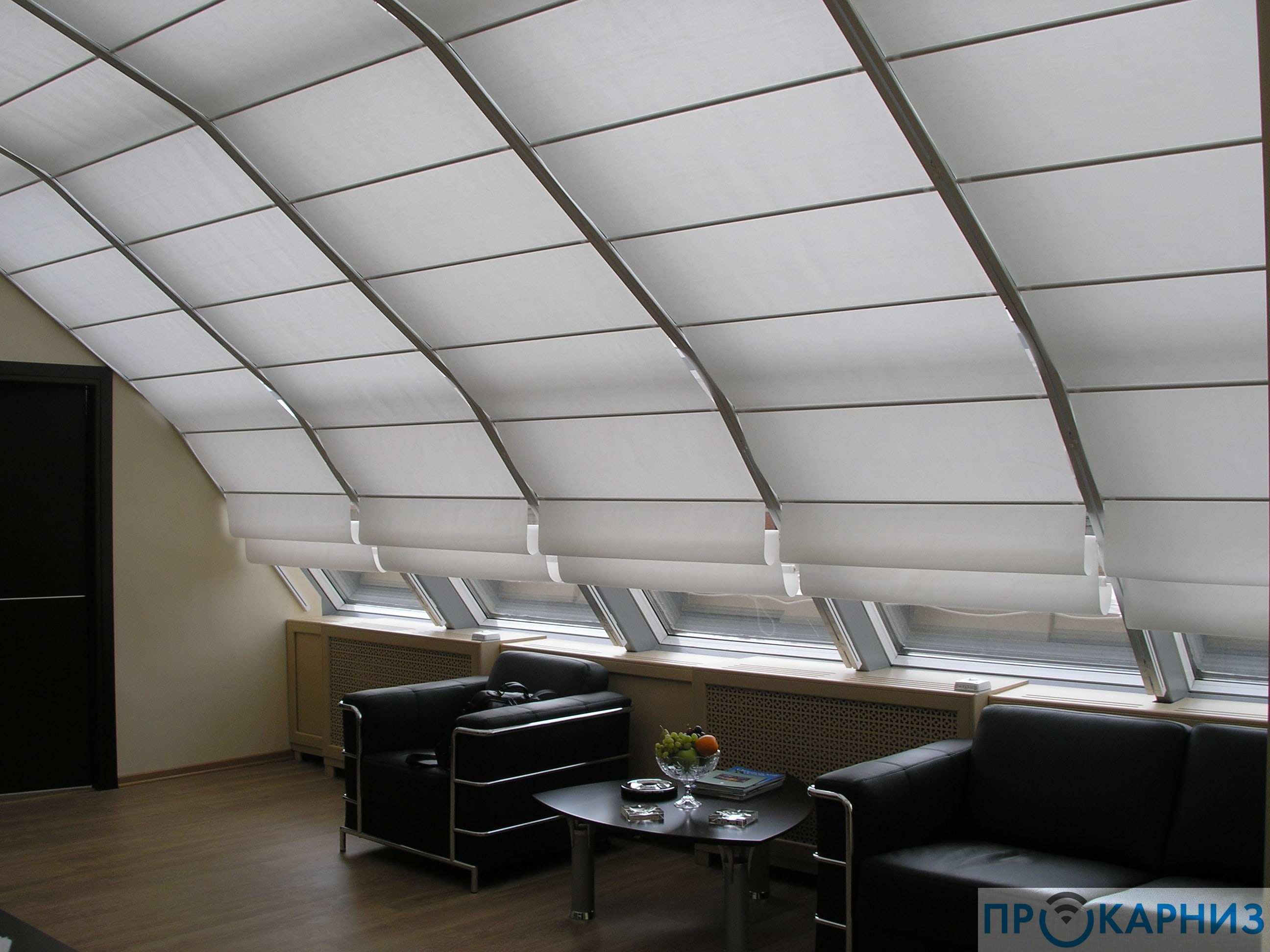 Простота и оригинальность электро штор позволяет установить их в самых недоступных труднодоступных местах зимнего сада. Для закрепления автоматических штор используют карниз с электроприводом.