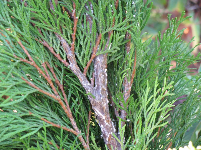 Из сосущих вредителей на хвое и веточках часто встречается также туевая ложнощитовка и можжевельниковая щитовка.