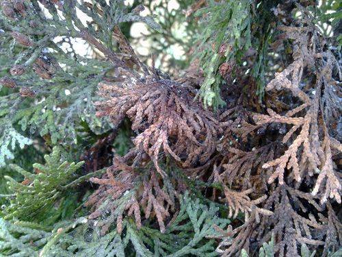 Что делать, если туя после зимы стала коричневой