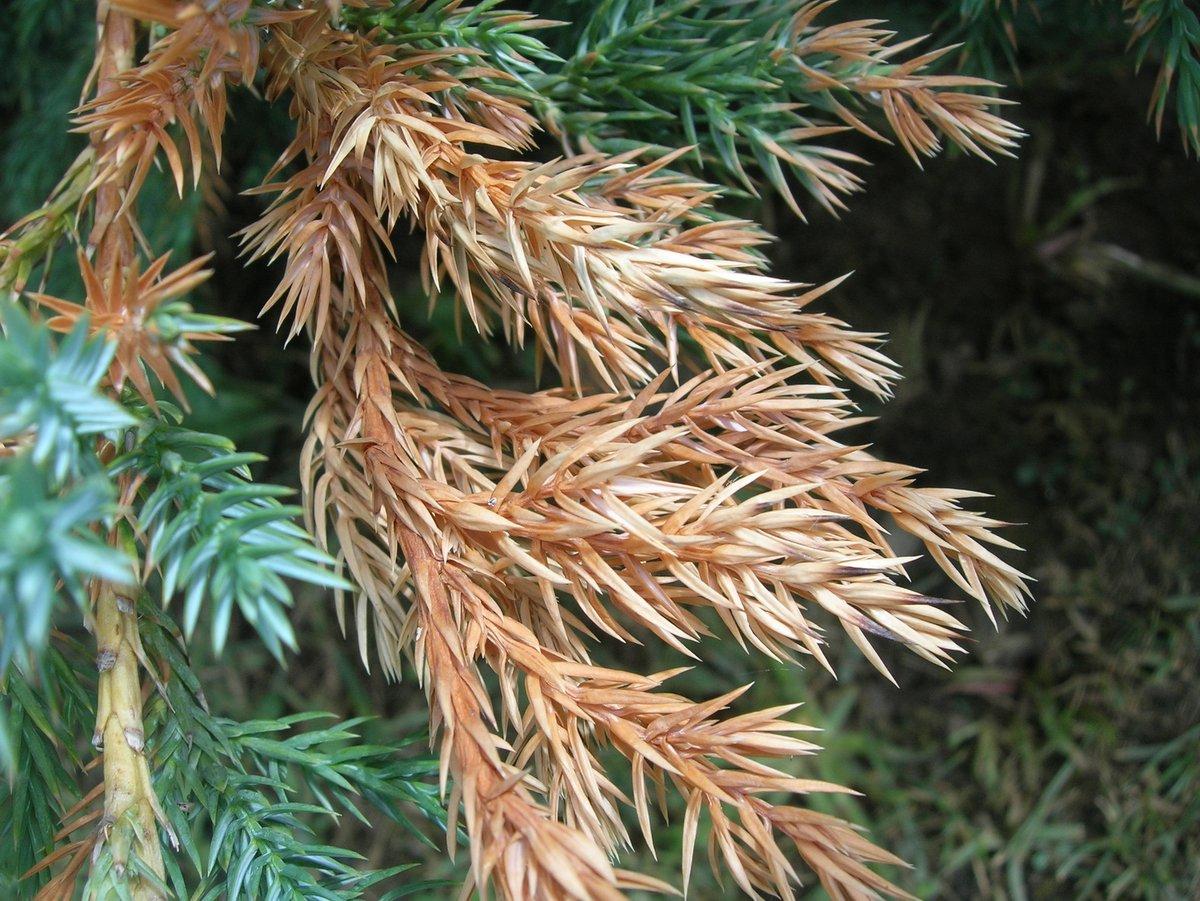 Пораженные растения постепенно погибают, а неубранные засохшие растения и оставленные пни являются источником постоянного заражения соседних хвойных растений.