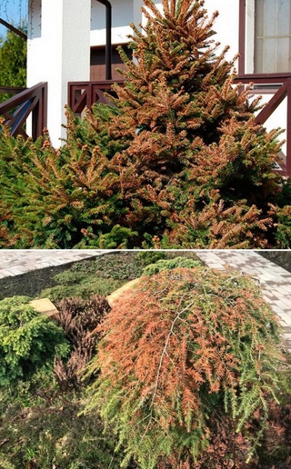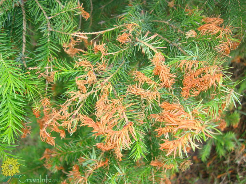Если хвоя уже обожжена, удалите пораженные части и притените дерево.