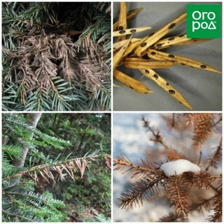 В первую очередь это высадка качественного посадочного материала, соблюдение всех требований агротехники выращивания и своевременная обработка растений средствами защиты, как профилактических, так и искореняющих. Защитные мероприятия должны носить комплексный характер. Как показала практика, лучшая защита – это профилактические опрыскивания весной, в самом начале распускания почек и отрастания молодой хвои. Опрыскивать необходимо всё, без исключения, растения в саду – от хвойных и до ягодных кустарников. Так как многие вредители и болезни у этих растений – общие.