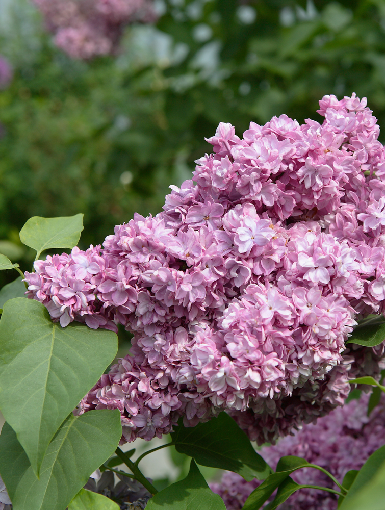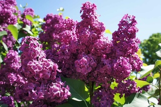 Эта эффектная пурпурная сирень будто устремлена ввысь. Великолепный сорт, он отлично смотрится вблизи и ещё лучше – на расстоянии.