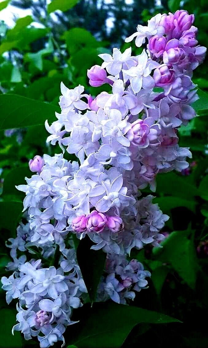 Сорт сирени «Защитникам Москвы». Цветки светло-розовато-лиловые, махровые, удивительно красивой формы. Соцветия крупные, тяжёлые.