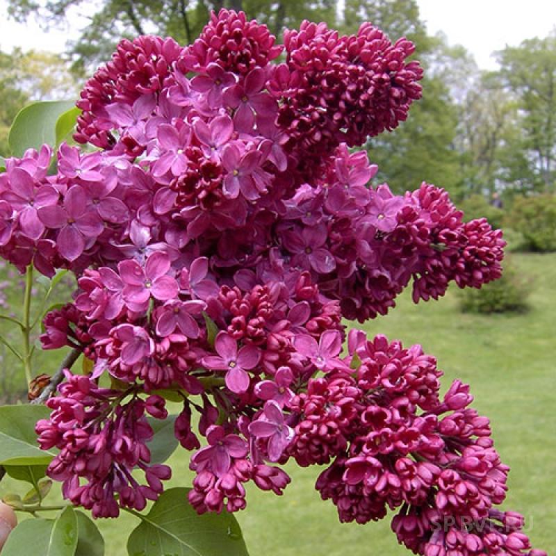 Это яркий, запоминающийся сорт. Сирень необычайно декоративна в стадии полуроспуска: яркие карминно-фиолетовые бутоны соседствуют с густо-лиловыми крупными цветками, а у полностью распустившихся цветков лепестки винтообразно изогнуты.