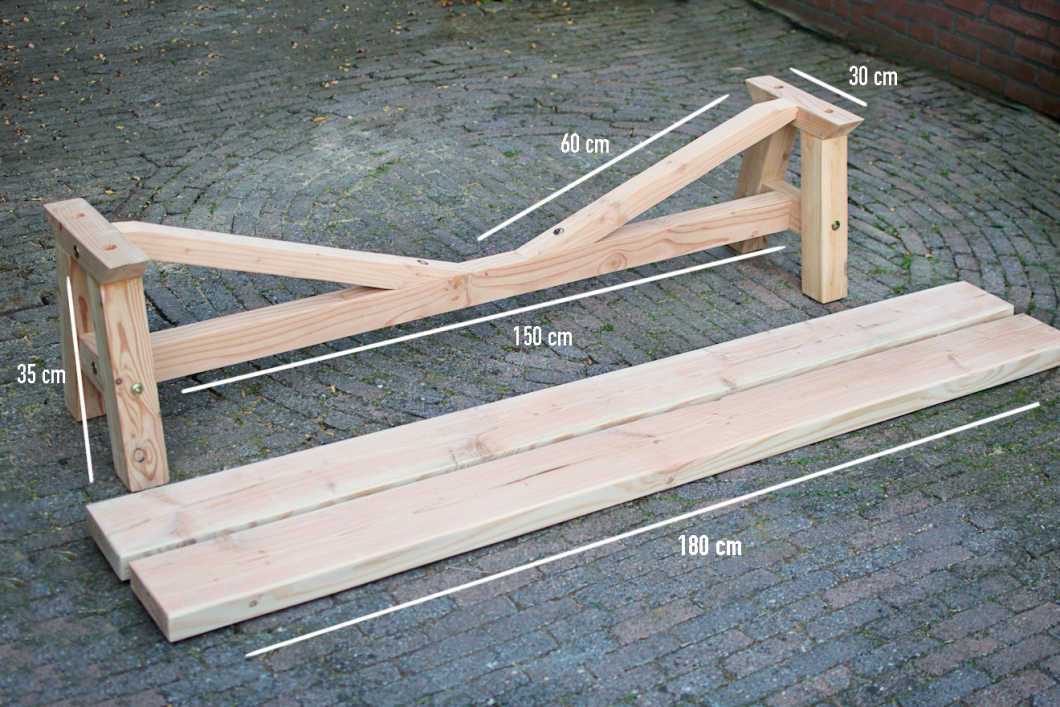- 2 ножки, которые будут еще и опорой для спинки – 900 на 150 мм и толщина 3-4 см;