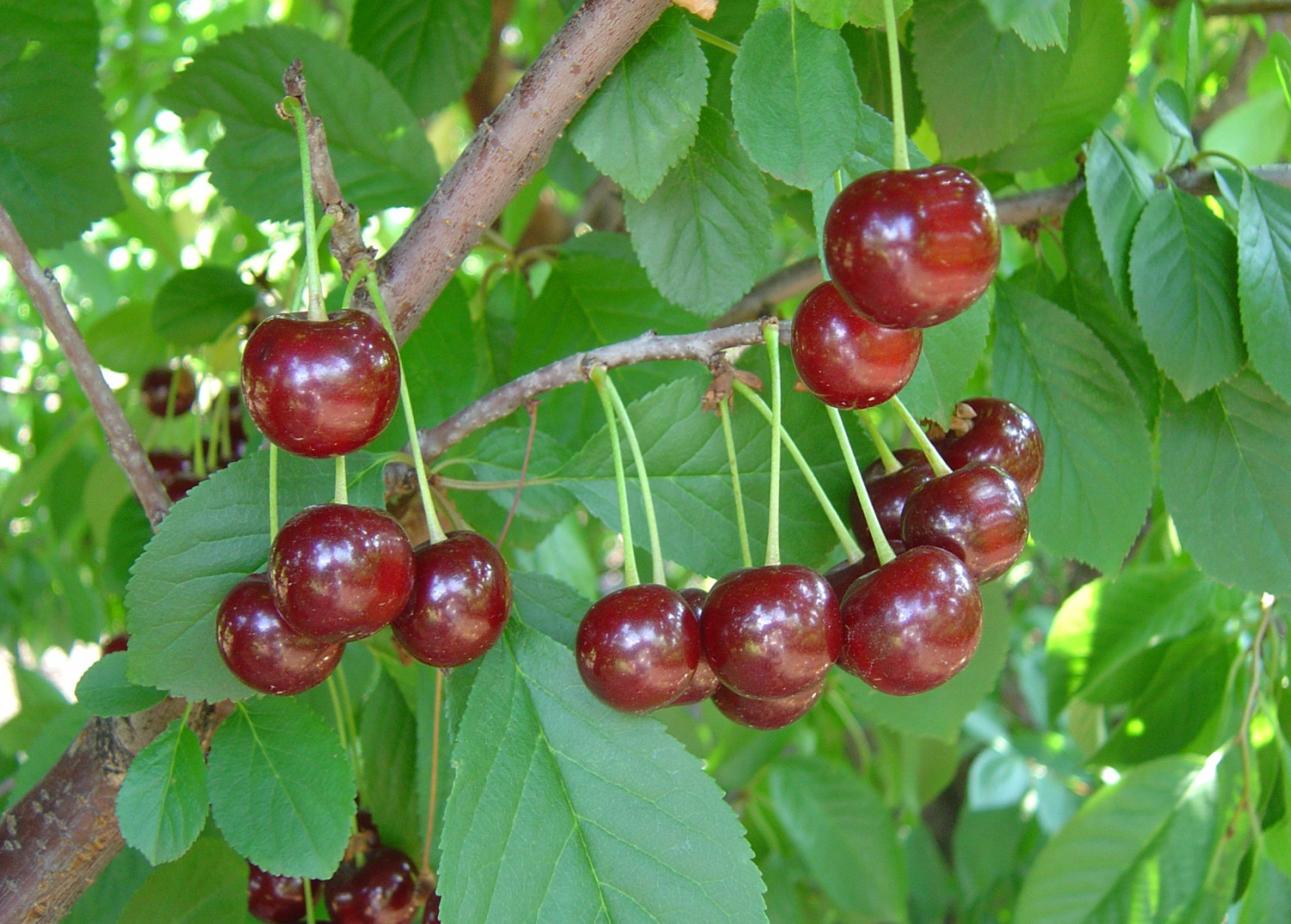 Черешня Ревна,ДайбераЕсли вы хотите вырастить действительно вкусный фрукт у себя дома или на даче –Сакура, японская вишня, она же мелкопильчатая вишняЭтот сорт имеет шаровидную крону, дерево средних размеров, крупные плоды. Мякоть с приятным кисловатым вкусом, плоды сочные, нежные, с темно-красной мякотью. Сок яркий, косточка маленькая, хорошо отделима от самой мякоти. Отличается урожайностью, но среднеустойчив к коккомикозу. Созревание плодов приходится на середину июля. Частично самоплодный.Желтоватые вишни «Королева Анна» сладкие, а красные вишни «Морелло» кислые, но хороши для начинки пирогов. Вишни «Бинг» лучше есть свежими, а вишни «Дьюкс» можно есть как свежими, так и использовать для приготовления многочисленных блюд. - ЧернокоркаВ отличие от вишни, коккомикоз черешню не поражает, но это не говорит о том, что дереву ничего не грозит. У него есть другой враг — курчавость, деформирующая листья, что приводит к слабому плодоношению.