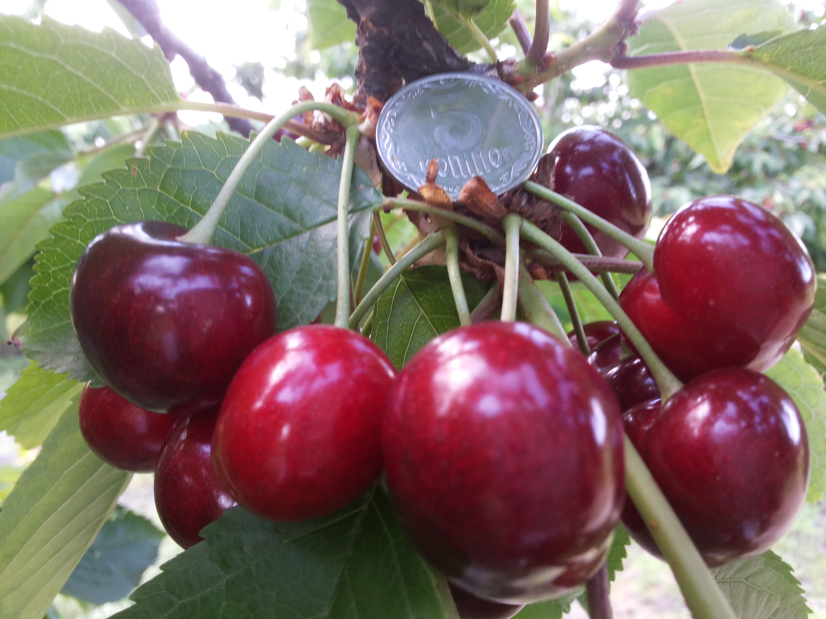 Один из наиболее стабильных сортов, который дает постоянно до 120 ц/га, независимо от погоды. Отлично опыляется, имеет крупные плоды, вес которых нередко достигает 6-7 г (среднестатистические – 4 грамма). Его преимущества в том, что он не подвергается воздействию грибковых заболеваний и его не едят насекомые. Практически никогда не требуются обработки инсектицидом, в отдельных случаях проводится 1 обработка через 2 недели после цветения дерева. Растет до 6 метров в высоту, крона конусовидная, раскидистая. Крупноплодная черешня, которая первой начала импортироваться в страны Европы и прошла по стандарту качества. На данный момент является универсальной и используется для любых целей.