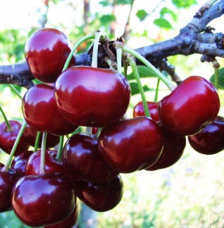 . Пожалуй, самый популярный сорт вишни, характеризуются крупными, темно-бордовыми плодами, косточка хорошо отделяется от мякоти. Средняя масса каждого — 4,5-5 граммов. Плодоножка длинная, прочно прикреплена к плоду; по этой причине ягоды даже при полном созревании не осыпаются с дерева. Созревание происходит в июне-июле.