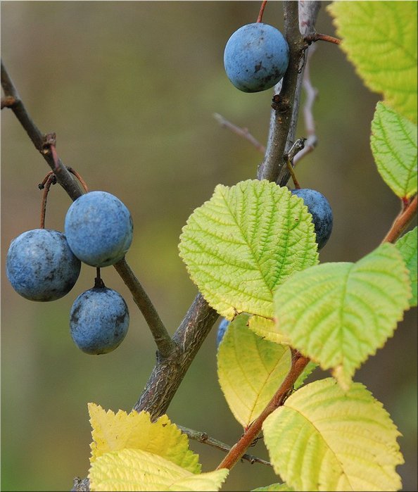 Синие круглые плоды куста терновникаPREMIUM