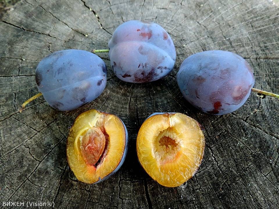 Основание и середина плода – округлые, вершина слегка заострена. Снаружи слива темно красная, а вот мякоть плода желтоватого цвета.