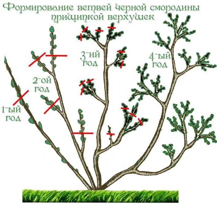 На вершине роста необходимо оставить ответвления побегов, так как это будет крона будущих кустов смородины.