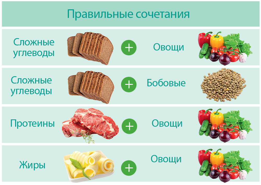 Во время планирования диеты нужно правильно подобрать сочетания продуктов.