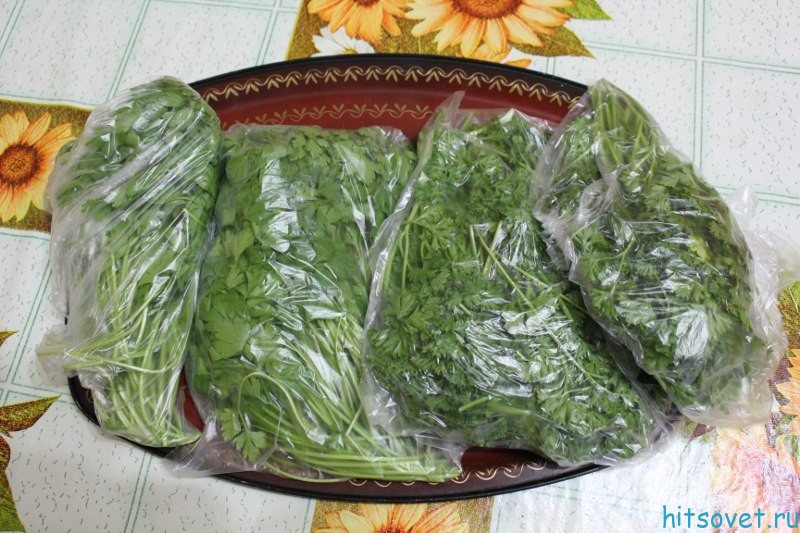 Для того, чтобы хранить зелень петрушки в морозильнике подойдут контейнеры из пластика, формы из силикона, пищевая пленка или специальные пакеты для замораживания. Стекло не используют, так как под воздействием низких температур оно может дать трещину. Металл же окисляется, соприкасаясь с зеленью, поэтому его также не рекомендуется использовать для того, чтобы хранить петрушку.