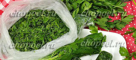 - Замораживать можно как целую, так и измельченную зелень. Для приготовления различных блюд редко используют цельные пучки. Чаще всего зелень измельчается ножом, а затем добавляется в качестве ароматической приправы. Поэтому удобнее всего сохранять ее в измельченном состоянии. Хранить такие заготовки можно в морозильной камере в полиэтиленовых пакетах. Но для этого надо знать, как сохранить петрушку на зиму правильно. После заморозки из пакета нужно удалить по возможности весь воздух и только после этого отправлять продукт на длительное хранение.