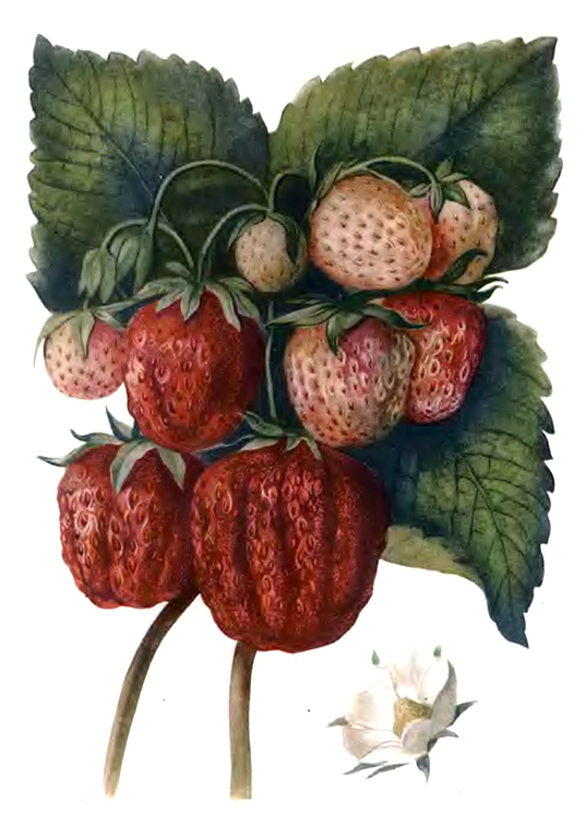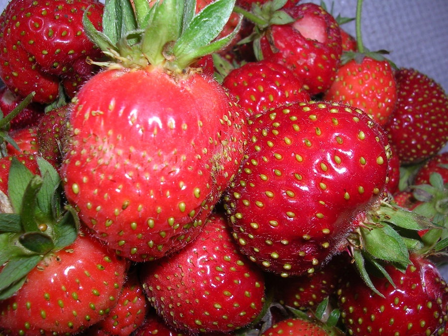 Ягоды тупоконической формы среднего размера, с красной блестящей поверхностью, покрытой многочисленными семянками, которые вдавлены в кожицу.