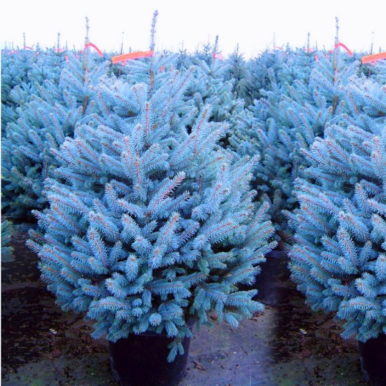 Сорта и разновидности: Picea pungens ‘Edith’, Picea pungens ‘Koster’, Picea pungens ‘The Blues’, Picea pungens ‘Regal Chub’, Picea pungens ‘Regal Chub’ pungens ‘Baby Blue Eyes’, Picea pungens ‘Mrs.Cesarini ’, Picea pungens‘ Glauca Globosa ’