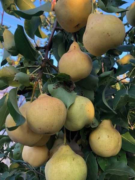 — груши осенние. Они готовы к сбору ближе к началу октября, созревают дружно и могут храниться примерно два месяца.