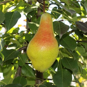 Дерево умеренного роста с широкопирамидальной кроной средней густоты. Начинает регулярно плодоносить на 3-й год. Плоды достаточно крупные, 180-190г, правильной грушевидной формы, с гладкой блестящей кожицей и светло-желтой, с розовым налетом, окраской. Желтоватая мякоть очень нежная, сочная и маслянистая.