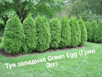 Многие высокорослые сорта с густой кроной имеют довольно узкий диаметр основания и могут быть размещены на небольшом участке. Из группы вертикальных сортов особого внимания заслуживают туи с яйцевидной и широкоокруглой формой: сочно-зелёная “Green Egg”, гребенчатая серо-зелёная “Cristata”, пушистая и широкая тёмно-зелёная “Woodwardii”.