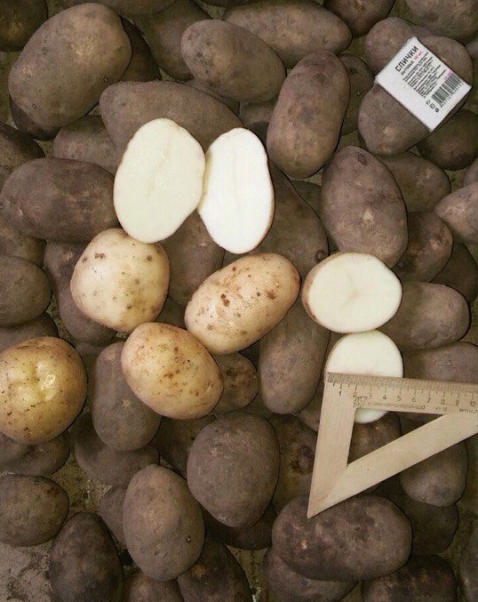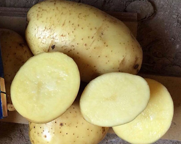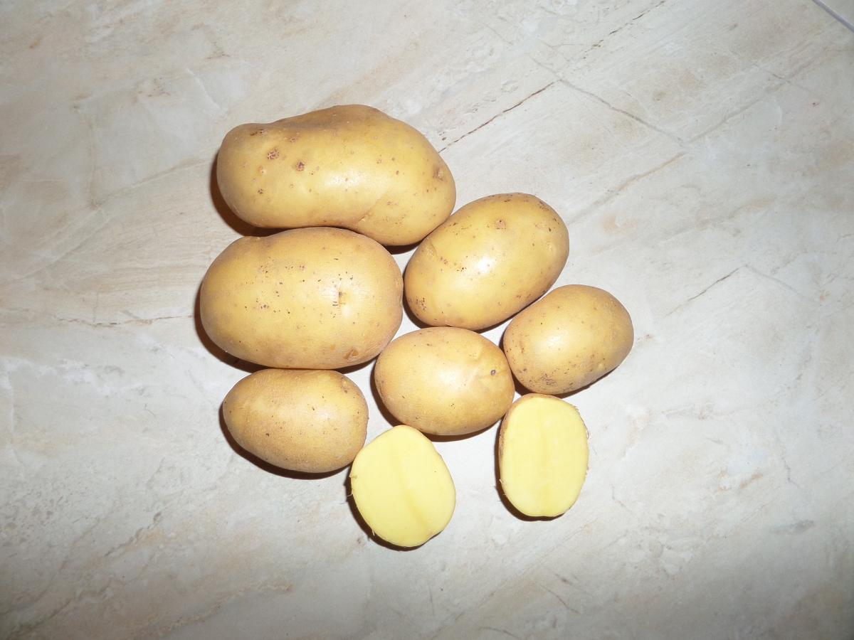Клубни овальные, покрыты кожурой средней гладкости. Глазки средней глубины. Вес клубня примерно до 155 г. Мякоть на разрезе желтого цвета, содержит крахмала 10-15,8 %. Созревает картофель в среднеранние сроки. Период от появления всходов до технической зрелости клубней составляет 70-90 дней.