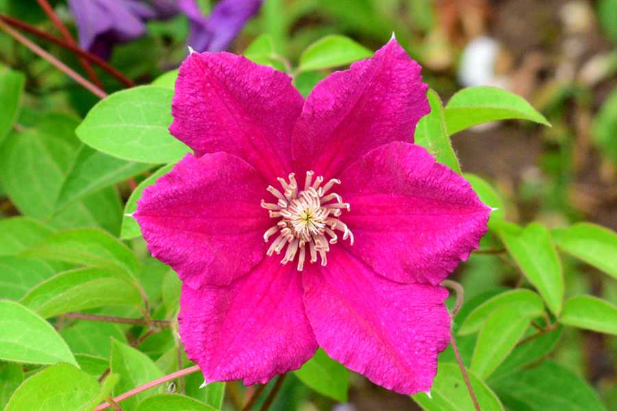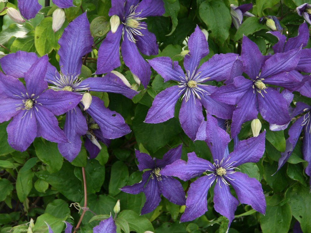 Клематис витичелла ‘Etoile Violette’Этот классический клематис витичелла имеет множество пурпурных цветов в июле и августе. Хорошо смотрится перелезание через забор, вверх по дереву или через бессвязную розу.