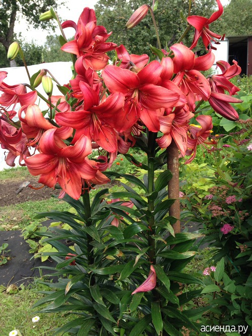 Один из самых рослых садовых гибридов вытягивается до 2 м и выпускает цветы до 25 см в диаметре. На одной такой лилии распускается до 30 бутонов, что смотрится необычайно ярко.