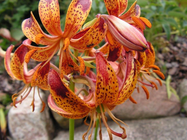 | Кудреватые | Насчитывают 200 сортов, известны как Мартагон. Высотой до 1,5 м. Переносят морозы, засуху, растут и в тени, пересадку переносят плохо, предпочитают известковые почвы. Цветки в виде чалмы «смотрят» вниз. Окрас сиреневый, апельсиновый, розовый, винный. |