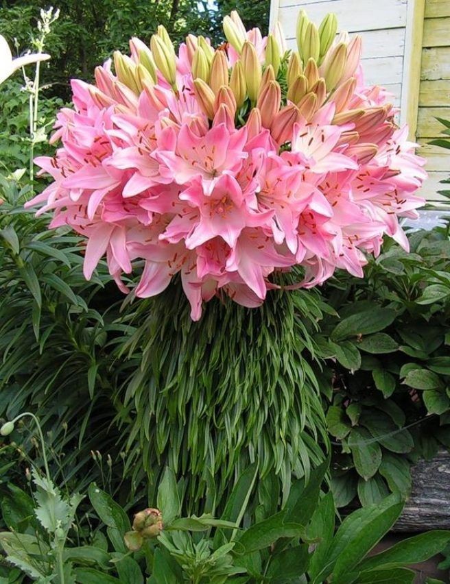 Гибридный сорт азиатской лилии обожают флористы и декораторы по всему миру. Она рослая, до 1,2 м, с крупными нежно-розовыми цветами по 15 см в диаметре. Одно растение может выпускать до сотни бутонов – редкое свойство отдельных сортов.